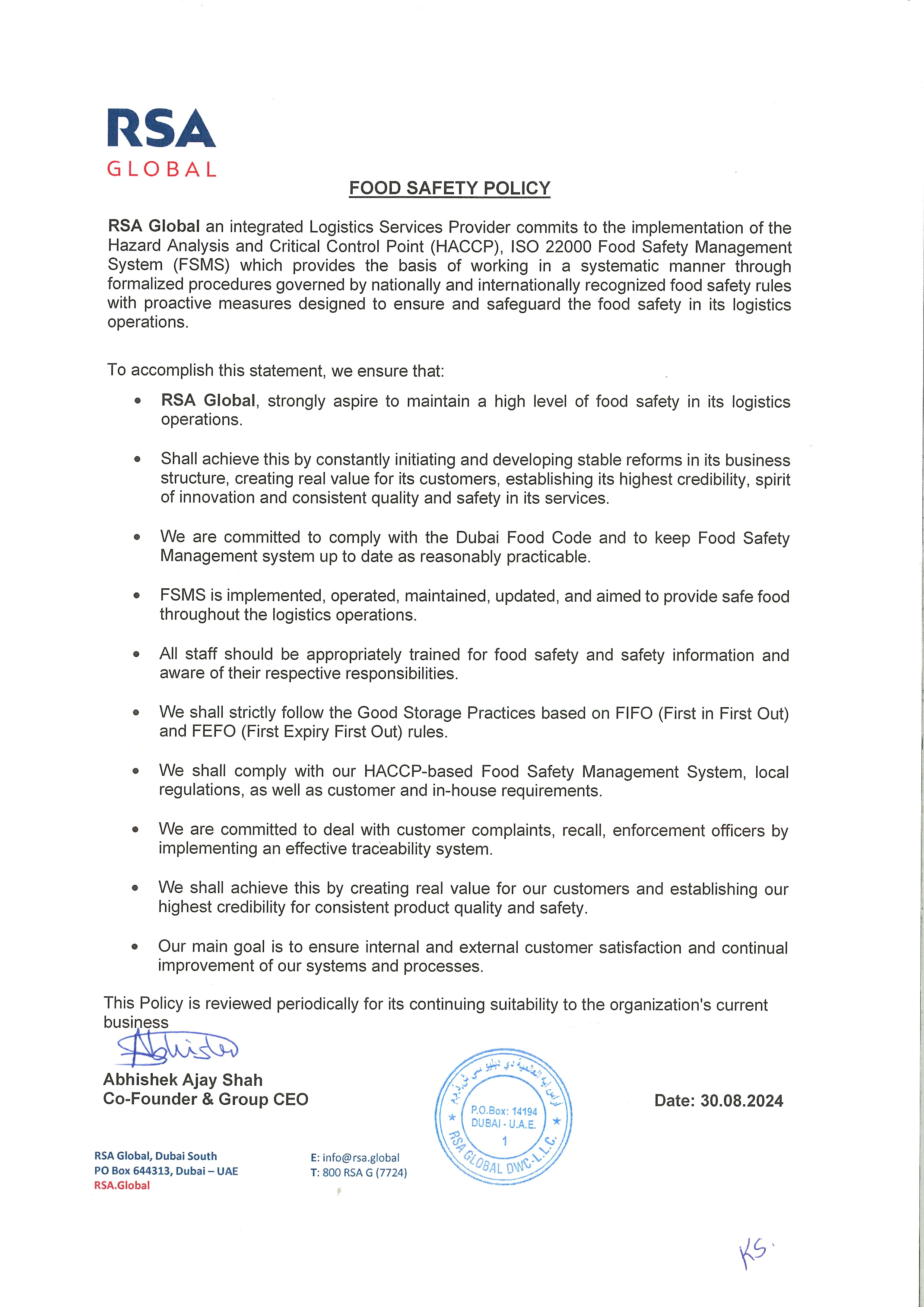 At RSA Global we are working together to achieve exemplary Health, Safety, Security, Environment and Quality performance in line with our core value being ‘WE ARE HSSEQ MASTERS’.