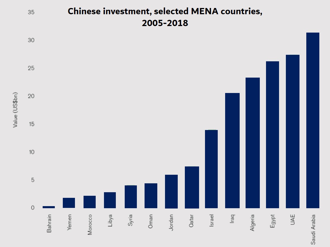 Moreover, China has immensely increased its investment in the region since 2005 and is now the largest investor with a particular focus on Saudi Arabia, the United Arab Emirates (UAE), Egypt, and Algeria. Main areas of investment have been infrastructure, the energy sector, construction, finance, and real-estate.
