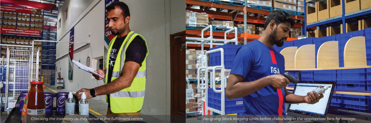 Once the inventory is received in our fulfillment centre, quality and quantity checks are being done to ensure that the right items are received before assigning SKU’s for speedy retrieval later. Once all items have been checked, it will be sorted and stored in specific storage locations.